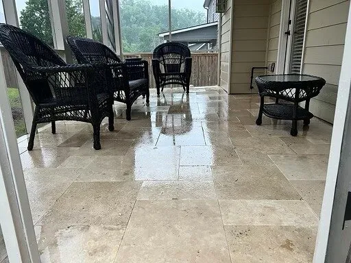 Ivory buff Travertine flooring at screened porch. - Photo 1 Ivory buff Travertine flooring at screened porch. - Photo 2